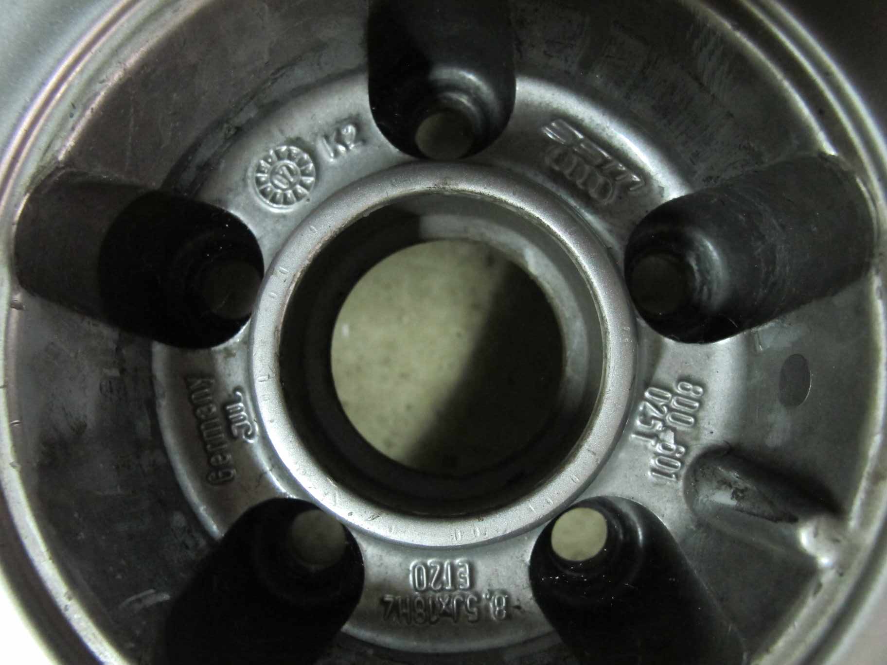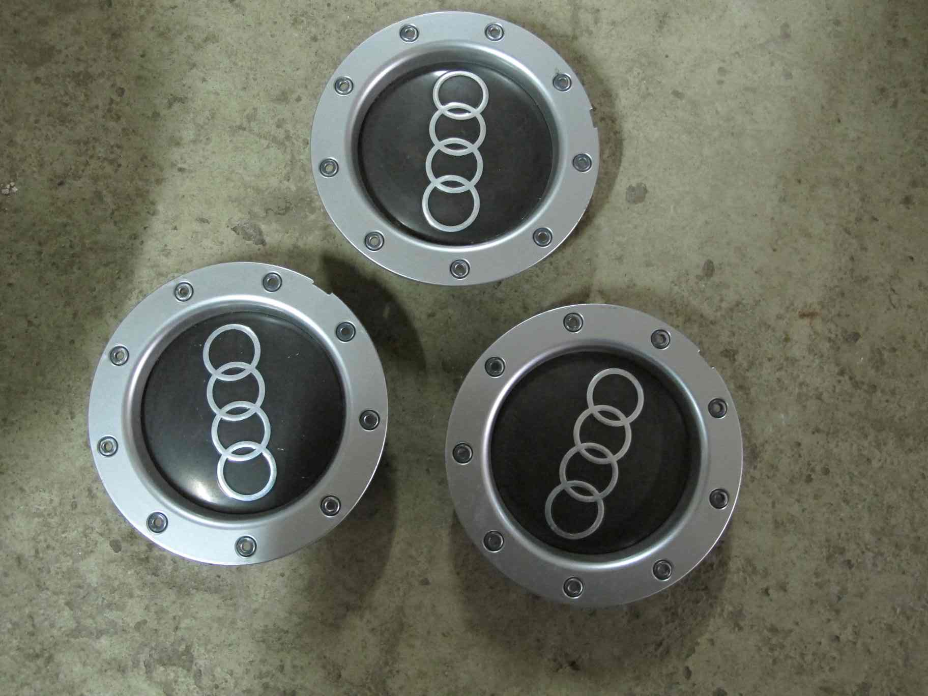 Bild på de tre centrumkåpor som finns till fälgarna + en extra bild på fälgarnas märkning:
